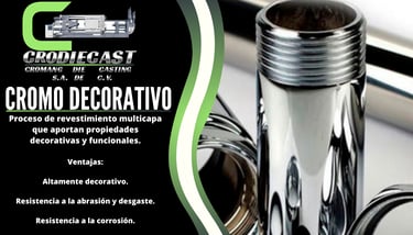 CROMANG DIE CASTING ES UNA EMPRESA 100% MEXICANA COMPROMETIDA CON LA CALIDAD Y EL SERVICIO DE NUESTROS CLIENTES, NOS ESPECIALIZAMOS EN LA INDUSTRIA DE LA TRANSFORMACION Y RECUBRIMIENTOS ELECTROLITICOS.